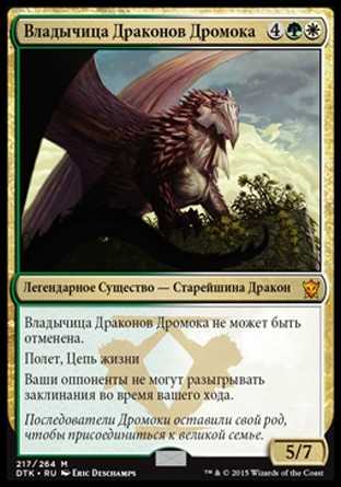| Card Text | Dragonlord Dromoka can t be countered. Flying, lifelink Your opponents can t cast spells during your turn. |