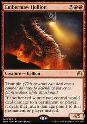 Card TextTrample (This creature can deal excess combat damage to defending player or planeswalker while attacking.) If another red source you control would deal damage to a permanent or player, it deals that much damage plus 1 to that permanent or player instead.