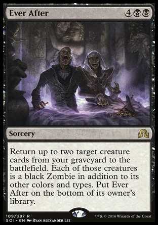 | Card Text | Return up to two target creature cards from your graveyard to the battlefield. Each of those creatures is a black Zombie in addition to its other colors and types. Put Ever After on the bottom of its owner's library. |