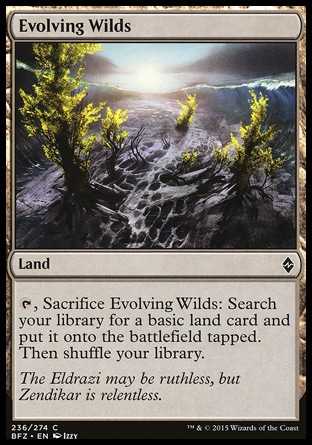 Card Text{T}, Sacrifice Evolving Wilds: Search your library for a basic land card and put it onto the battlefield tapped. Then shuffle your library.