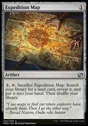Card Text{2}, {T}, Sacrifice Expedition Map: Search your library for a land card, reveal it, and put it into your hand. Then shuffle your library.
