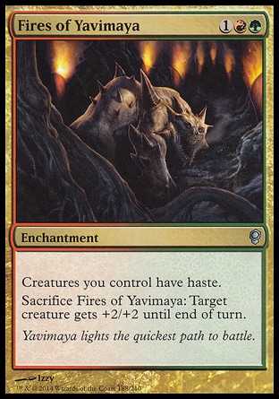 Card TextCreatures you control have haste. Sacrifice Fires of Yavimaya: Target creature gets +2/+2 until end of turn.