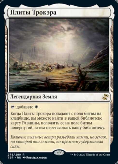 | Card Text | : add .when flagstones of trokair is put into a graveyard from the battlefield, you may search your library for a plains card, put it onto the battlefield tapped, then shuffle your library. |