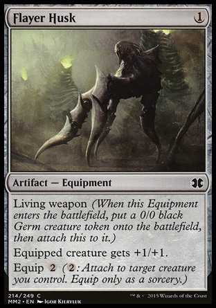 Card TextLiving weapon (When this Equipment enters the battlefield, put a 0/0 black Germ creature token onto the battlefield, then attach this to it.) Equipped creature gets +1/+1. Equip {2}