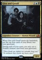 | Card Text | When Gisa and Geralf enters the battlefield, put the top four cards of your library into your graveyard. During each of your turns, you may cast a Zombie creature card from your graveyard. |