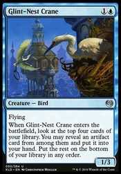 When Glint-Nest Crane enters the battlefield, look at the top four cards of your library. You may reveal an artifact card from among them and put it into your hand. Put the rest on the bottom of your library in any order.
