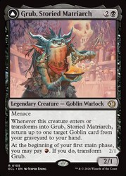 | Card Text | Menace Whenever this creature enters or transforms into Grub, Storied Matriarch, return up to one target Goblin card from your graveyard to your hand. At the beginning of your first main phase, you may pay |