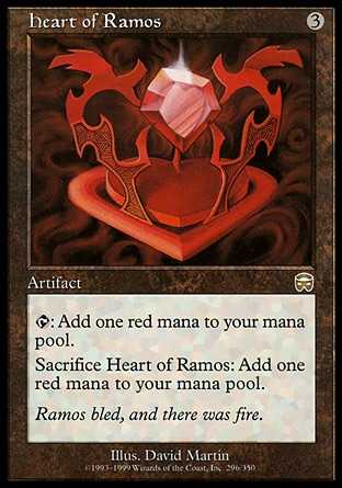 Card Text{T}: Add {R} to your mana pool. Sacrifice Heart of Ramos: Add {R} to your mana pool.