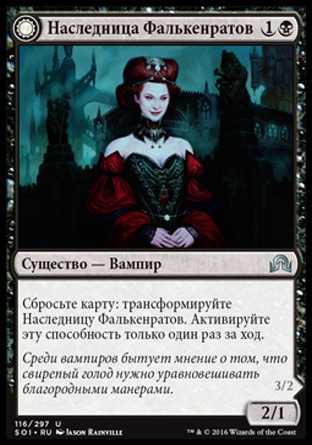 | Card Text | Discard a card: Transform Heir of Falkenrath. Activate this ability only once each turn. |