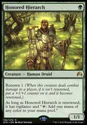 | Card Text | Renown 1 (When this creature deals combat damage to a player, if it isn t renowned, put a +1/+1 counter on it and it becomes renowned.) As long as Honored Hierarch is renowned, it has vigilance and "{T}: Add one mana of any color to your mana pool." |