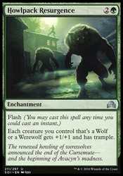 Each creature you control that's a Wolf or a Werewolf gets +1/+1 and has trample.
