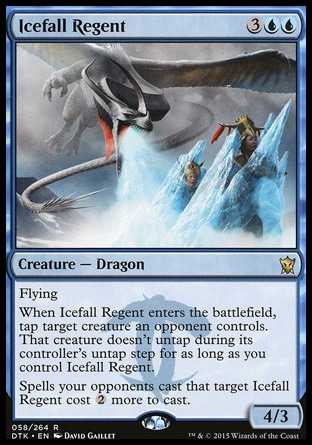 | Card Text | Flying When Icefall Regent enters the battlefield, tap target creature an opponent controls. That creature doesn t untap during its controller s untap step for as long as you control Icefall Regent. Spells your opponents cast that target Icefall Regent cost {2} more to cast. |