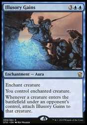 | Card Text | Enchant creature You control enchanted creature. Whenever a creature enters the battlefield under an opponent s control, attach Illusory Gains to that creature. |