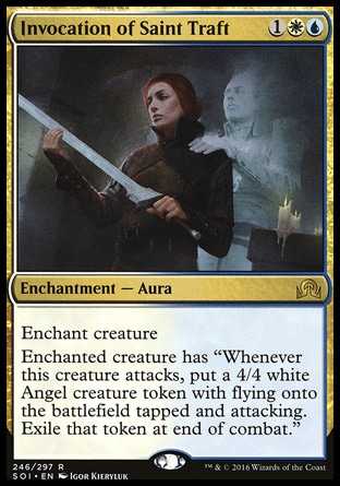 | Card Text | Enchant creature Enchanted creature has "Whenever this creature attacks, put a 4/4 white Angel creature token with flying onto the battlefield tapped and attacking. Exile that token at end of combat." |