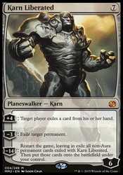 | Card Text | +4: Target player exiles a card from his or her hand. −3: Exile target permanent. −14: Restart the game, leaving in exile all non-Aura permanent cards exiled with Karn Liberated. Then put those cards onto the battlefield under your control. |
