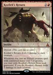 | Card Text | Devoid (This card has no color.) Kozilek's Return deals 2 damage to each creature. Whenever you cast an Eldrazi creature spell with converted mana cost 7 or greater, you may exile Kozilek's Return from your graveyard. If you do, Kozilek's Return deals 5 damage to each creature. |