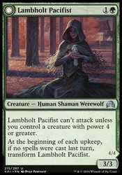At the beginning of each upkeep, if no spells were cast last turn, transform Lambholt Pacifist.