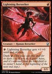 | Card Text | {R}: Lightning Berserker gets +1/+0 until end of turn. Dash {R} (You may cast this spell for its dash cost. If you do, it gains haste, and it s returned from the battlefield to its owner s hand at the beginning of the next end step.) |