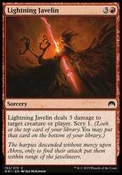 | Card Text | Lightning Javelin deals 3 damage to target creature or player. Scry 1. (Look at the top card of your library. You may put that card on the bottom of your library.) |