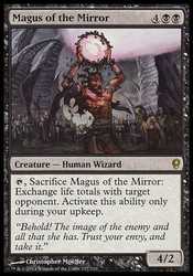 Card Text{T}, Sacrifice Magus of the Mirror: Exchange life totals with target opponent. Activate this ability only during your upkeep.