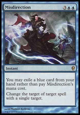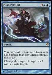 Card TextYou may exile a blue card from your hand rather than pay Misdirection s mana cost. Change the target of target spell with a single target.