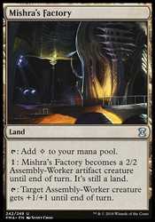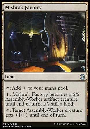 | Card Text | {T}: Add {C} to your mana pool. {1}: Mishra's Factory becomes a 2/2 Assembly-Worker artifact creature until end of turn. It's still a land. {T}: Target Assembly-Worker creature gets +1/+1 until end of turn. |