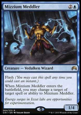 | Card Text | Flash (You may cast this spell any time you could cast an instant.) When Mizzium Meddler enters the battlefield, you may change a target of target spell or ability to Mizzium Meddler. |