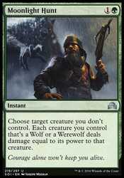 | Card Text | Choose target creature you don't control. Each creature you control that's a Wolf or a Werewolf deals damage equal to its power to that creature. |