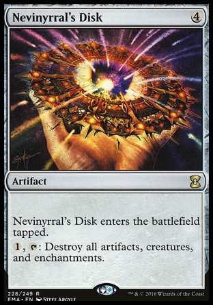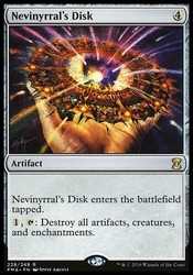 | Card Text | Nevinyrral's Disk enters the battlefield tapped. {1}, {T}: Destroy all artifacts, creatures, and enchantments. |