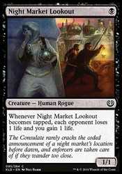 Card TextWhenever Night Market Lookout becomes tapped, each opponent loses 1 life and you gain 1 life.