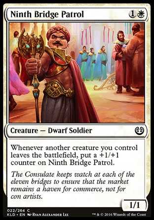 Card TextWhenever another creature you control leaves the battlefield, put a +1/+1 counter on Ninth Bridge Patrol.