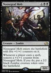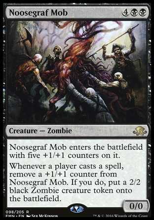 | Card Text | Noosegraf Mob enters the battlefield with five +1/+1 counters on it. Whenever a player casts a spell, remove a +1/+1 counter from Noosegraf Mob. If you do, put a 2/2 black Zombie creature token onto the battlefield. |