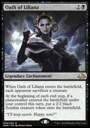 Card TextWhen Oath of Liliana enters the battlefield, each opponent sacrifices a creature.