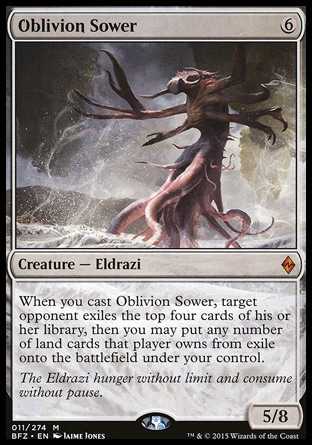 | Card Text | When you cast Oblivion Sower, target opponent exiles the top four cards of his or her library, then you may put any number of land cards that player owns from exile onto the battlefield under your control. |