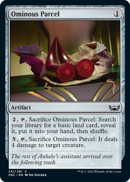 | Card Text |  ,  , sacrifice ominous parcel: search your library for a basic land card, reveal it, put it into your hand, then shuffle.
