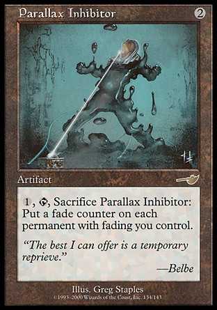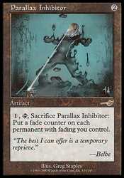 | Card Text | {1}, {T}, Sacrifice Parallax Inhibitor: Put a fade counter on each permanent with fading you control. |