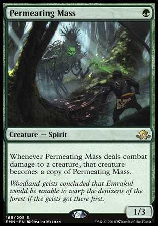 Card TextWhenever Permeating Mass deals combat damage to a creature, that creature becomes a copy of Permeating Mass.