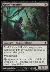 | Card Text | Multikicker {1}{B} (You may pay an additional {1}{B} any number of times as you cast this spell.) Swampwalk (This creature can t be blocked as long as defending player controls a Swamp.) Quag Vampires enters the battlefield with a +1/+1 counter on it for each time it was kicked. |