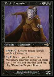 | Card Text | {1}{B}{B}, {T}: Destroy target tapped nonblack creature. {3}, {T}: Search your library for a Mercenary permanent card with converted mana cost 3 or less and put it onto the battlefield. Then shuffle your library. |