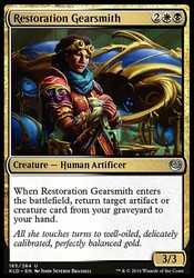 Card TextWhen Restoration Gearsmith enters the battlefield, return target artifact or creature card from your graveyard to your hand.