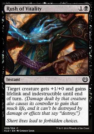 | Card Text | Target creature gets +1/+0 and gains lifelink and indestructible until end of turn. (Damage dealt by that creature also causes its controller to gain that much life, and it can't be destroyed by damage or effects that say "destroy.") |