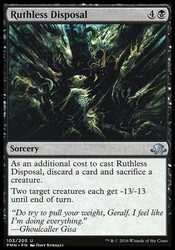 | Card Text | As an additional cost to cast Ruthless Disposal, discard a card and sacrifice a creature. Two target creatures each get -13/-13 until end of turn. |