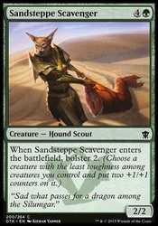 | Card Text | When Sandsteppe Scavenger enters the battlefield, bolster 2. (Choose a creature with the least toughness among creatures you control and put two +1/+1 counters on it.) |