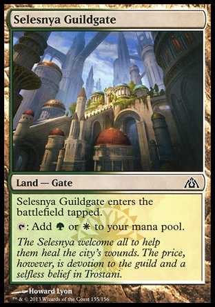 Card TextSelesnya Guildgate enters the battlefield tapped. {T}: Add {G} or {W} to your mana pool.