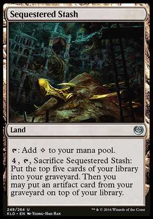 | Card Text | {T}: Add {C} to your mana pool. {4}, {T}, Sacrifice Sequestered Stash: Put the top five cards of your library into your graveyard. Then you may put an artifact card from your graveyard on top of your library. |