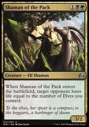 Card TextWhen Shaman of the Pack enters the battlefield, target opponent loses life equal to the number of Elves you control.