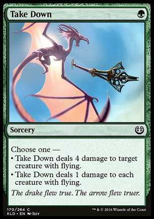| Card Text | Choose one — • Take Down deals 4 damage to target creature with flying. • Take Down deals 1 damage to each creature with flying. |