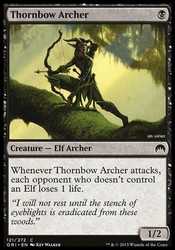 Card TextWhenever Thornbow Archer attacks, each opponent who doesn t control an Elf loses 1 life.