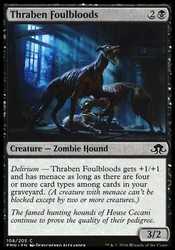 Card TextDelirium — Thraben Foulbloods gets +1/+1 and has menace as long as there are four or more card types among cards in your graveyard. (A creature with menace can't be blocked except by two or more creatures.)