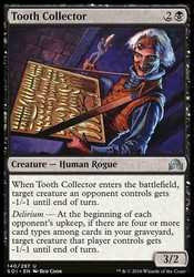 | Card Text | When Tooth Collector enters the battlefield, target creature an opponent controls gets -1/-1 until end of turn. Delirium — At the beginning of each opponent's upkeep, if there are four or more card types among cards in your graveyard, target creature that player controls gets -1/-1 until end of turn. |